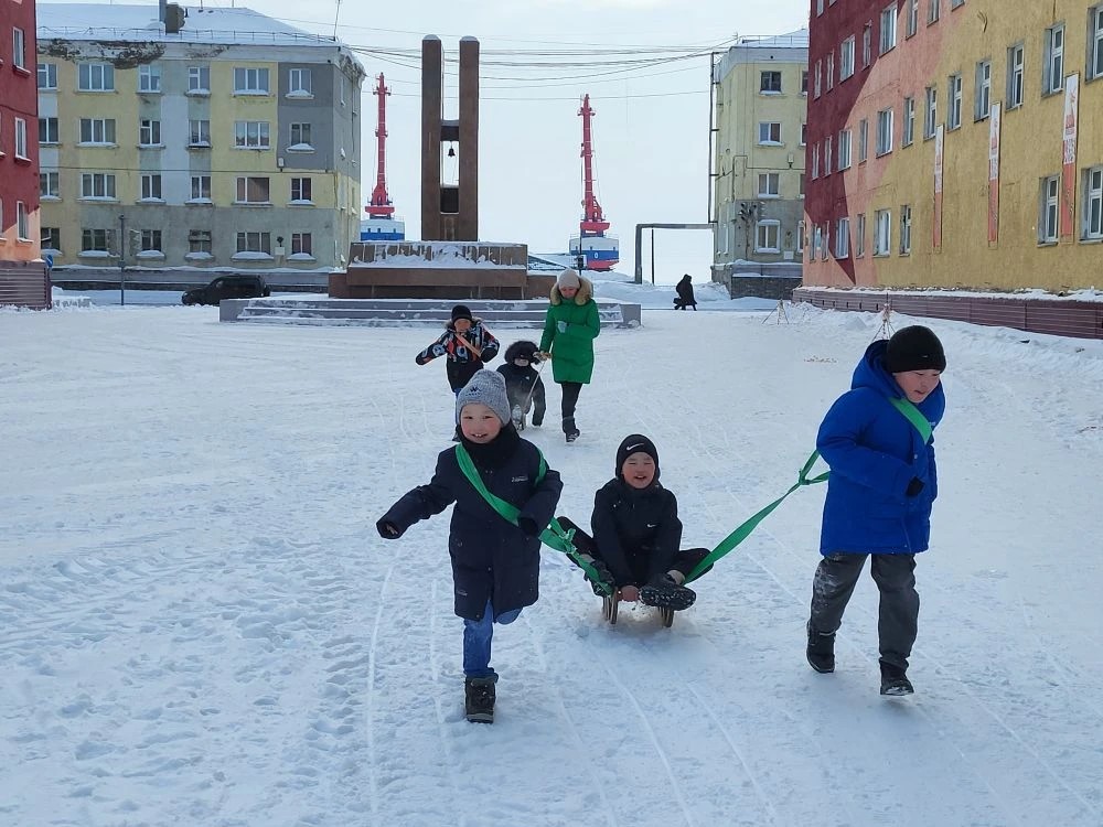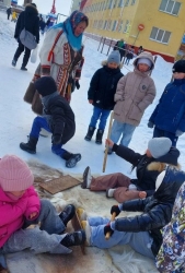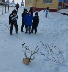 Настоящим праздником для ребят стало занятие, проведённое сотрудницей Таймырского краеведческого музея Еленой Евай. Мероприятие прошло на уличной площадке рядом со школой. На свежем воздухе юные северяне проявили сноровку и силу в перетягивании палки, прыжках через нарты, метании тынзяна (маута) на оленьи рога.