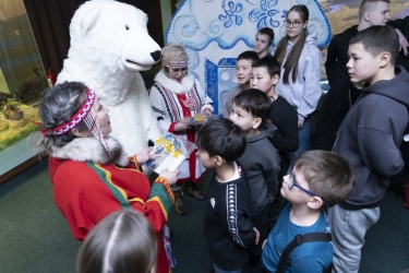 Самые юные посетители отправились в путешествие по долганским сказкам. В аутентичной обстановке, у чумового очага они познакомились с культурой и бытом долган. А представительницы ненецкого и нганасанского народов вместе с Белым Медведем загадывали посетителям северные загадки и угощали леденцами.