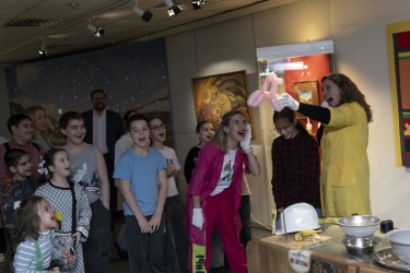 Для семей с детьми состоялась интерактивная программа «Магия семьи» с играми, конкурсами и подарками. Также желающие побывали на театрализованной экскурсии по выставке «Великая Северная экспедиция» красноярской художницы Елены Ильянковой, приняли участие в тематическом квизе и погрузились в историю освоения Арктики с помощью «оживших полотен» вместе с ведущим площадки - историческим персонажем Василием Прончищевым.
