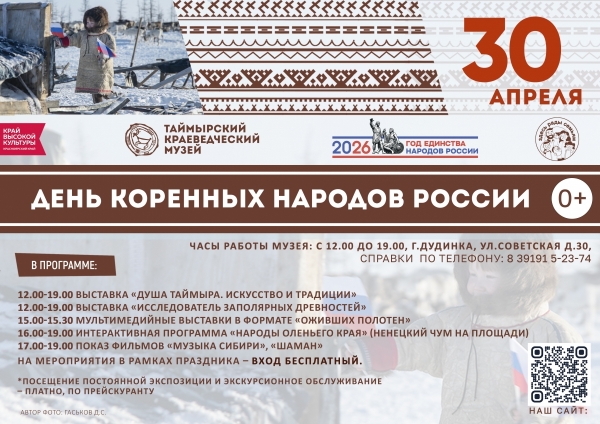 Таймырский краеведческий музей готовится ко Дню коренных народов России, масштабное празднование которого состоится 30 апреля на разных площадках города Дудинки.