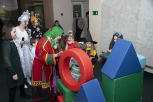 По традиции, ребята играли в новогодние игры, пели песни и водили хороводы у праздничной нарядной елки. Не обошлось без приключений. Вместе со сказочным героем Вовкой они побывали в гостях у Царя-путешественника, вечно недовольной Старухи из сказки про золотую рыбку, изобретательной Василисы Премудрой, бодрых девиц-молодиц с одинаковыми лицами и гостеприимной Печки-матушки. Детвора выполняла задания, и к концу путешествия собрала из отдельных фрагментов волшебный посох Деда Мороза: такой нужный для создания новогодней атмосферы!