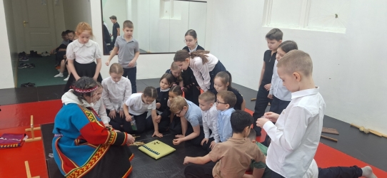 Во время интерактивной программы ребята познакомились с традициями и культурным наследием коренных жителей Таймыра. Большой интерес вызвали этнографические предметы из фондов музея: школьники с увлечением рассматривали эвенкийские луки седел и ножны, тактильно изучали нганасанские и долганские орнаменты на одежде. Сотрудники музея рассказали о непростом процессе выделки оленьих шкур, из которых северяне издавна шили одежду и изготавливали предметы быта. Яркие эмоции у школьников вызвал шаманский бубен - его звук завораживал и переносил в атмосферу таймырской тундры. Неподдельное удивление вызвали ненецкие куклы - нухуко, изготовленные с использованием надклювьев гуся и утки. Желающие смогли попробовать свои силы в метании маута на оленьи рога, а самые меткие были отмечены памятными сувенирами от музея.