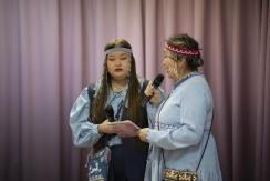 Вместе с ведущими – сотрудником музея Еленой Евай и волонтёром Аполлинарией Евай говорили о самом важном – о языке, на котором говорят представители ненецкого народа: родители, бабушки и дедушки.