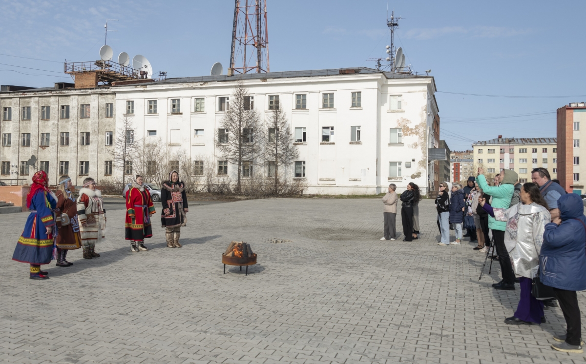 В Дудинке в честь встречи «Арктического бубна» был разведен Огонь Дружбы. Руководитель Таймырского местного отделения РГО Эмилия Стамбровская выступила с приветственным словом. Участники церемонии – представители пяти арктических этносов - произнесли слова приветствия на родных языках: ненецком, долганском, нганасанском, энецком и эвенкийском. А затем – каждый на своем языке написал на бубне название города – Дудинки.