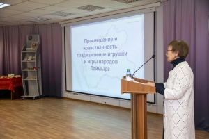 В рамках мероприятия прозвучали доклады духовенства, сотрудников образовательных и культурных учреждений Дудинки. Так, настоятель Дудинской Свято-Введенской церкви, протоиерей Георгий Ицков выступил с сообщением об идеях книги «Война и Библия» в пересказе и комментариях Суханова Олега, старшего преподавателя Московской духовной Академии, а старший научный сотрудник Владимир Рубителев – рассказал об историческом периоде в работе Таймырского музея в 1959-1972 гг., когда им руководила Александра Евграфовна Пичугова. Учитель начальных классов Дудинской средней школы №1, преподаватель Воскресной школы Галина Меркурьева поделилась опытом работы в сфере духовно-нравственного воспитания младших школьников, а преподаватель Таймырского колледжа – представила доклад об истории учреждения, в котором трудится. Никого не оставило равнодушным и выступление кандидата педагогических наук, сотрудника Таймырского Дома народного творчества Анны Барболиной «Просвещение и нравственность: традиционная игрушка и игры народов Таймыра», которая не только подготовила презентацию, но и наглядно продемонстрировала игры и игрушки народов Севера участникам мероприятия.