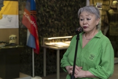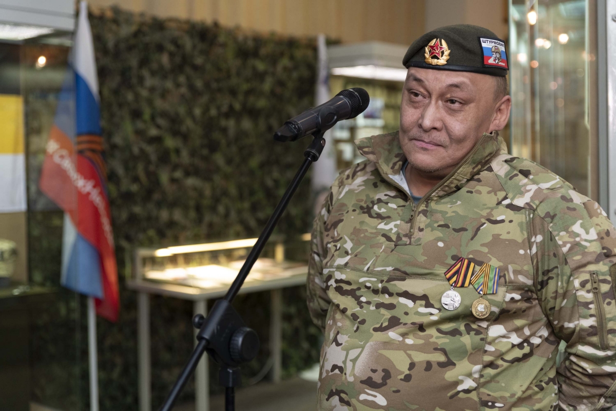 С короткой приветственной речью выступил участник Специальной военной операции, механик-водитель 9 роты 3 батальона 169 отдельной мотострелковой бригады Владимир Евай. В прошлом году Владимир Владимирович передал в фонд Таймырского краеведческого музея свои личные вещи: флаг с подписями бойцов, армейский жетон, нашивки, часы и штык-нож. Все эти предметы были представлены в обновлённой экспозиции «СВОи.Таймыр», презентация которой стала частью мероприятия. Также экспозицию дополнили форменный берет, котелок и флаг Воздушно-десантных войск участника открытия выставки «СВОи.Таймыр» в прошлом году, гвардии рядового 2-го батальона 2-й минометной батареи 1-й отдельной гвардейской десантно-штурмовой бригады ВДВ «Чёрные волки» Дмитрия Подылина.
