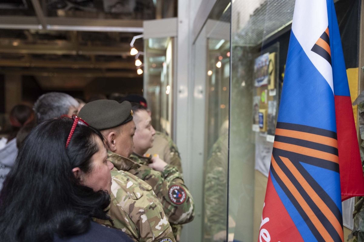 Научный сотрудник музея Светлана Кицан провела для присутствующих экскурсию по выставочному комплексу, посвященному Специальной военной операции. Она погрузила присутствующих в историю событий в зоне СВО и представила предметы, пополнившие выставку.
