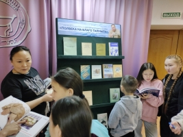 Ребятам рассказали о жизненном пути заслуженного деятеля науки РФ и о том, какой Анатолий Дмитриевич Мухачев внес заметный вклад в развитие северного оленеводства и традиционного природопользования. Школьники с удовольствием отвечали на заданные вопросы, связанные с этой темой. А затем – с большим интересом изучали представленные на выставке его книги.