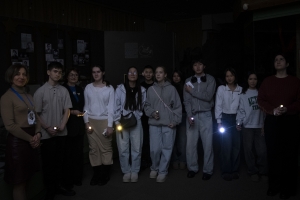 Музейные залы погрузились в темноту, чтобы юные северяне смогли посмотреть на историю родного края под новым углом: в атмосфере настоящей полярной ночи. Каждый участник получил фонарик, и этот луч в темноте стал путеводной нитью в мир Таймыра.