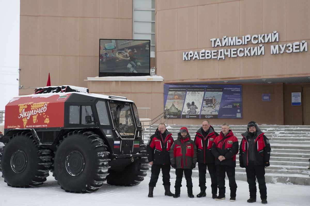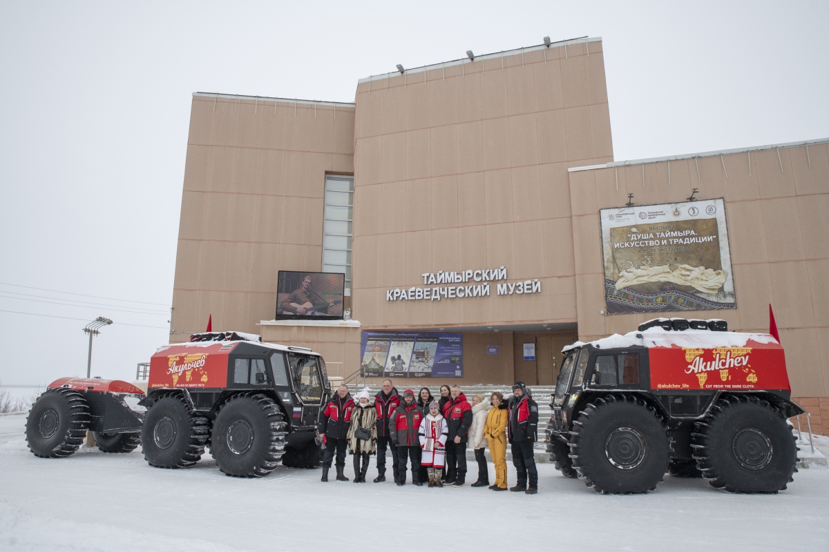 Сегодня Таймырский краеведческий музей посетила команда арктический экспедиции «От Камы до мыса Челюскин» под руководством Сергея Акульчева. Путешественники преодолевают свой путь на современных вездеходах, снимая документальный фильм о людях Арктики.